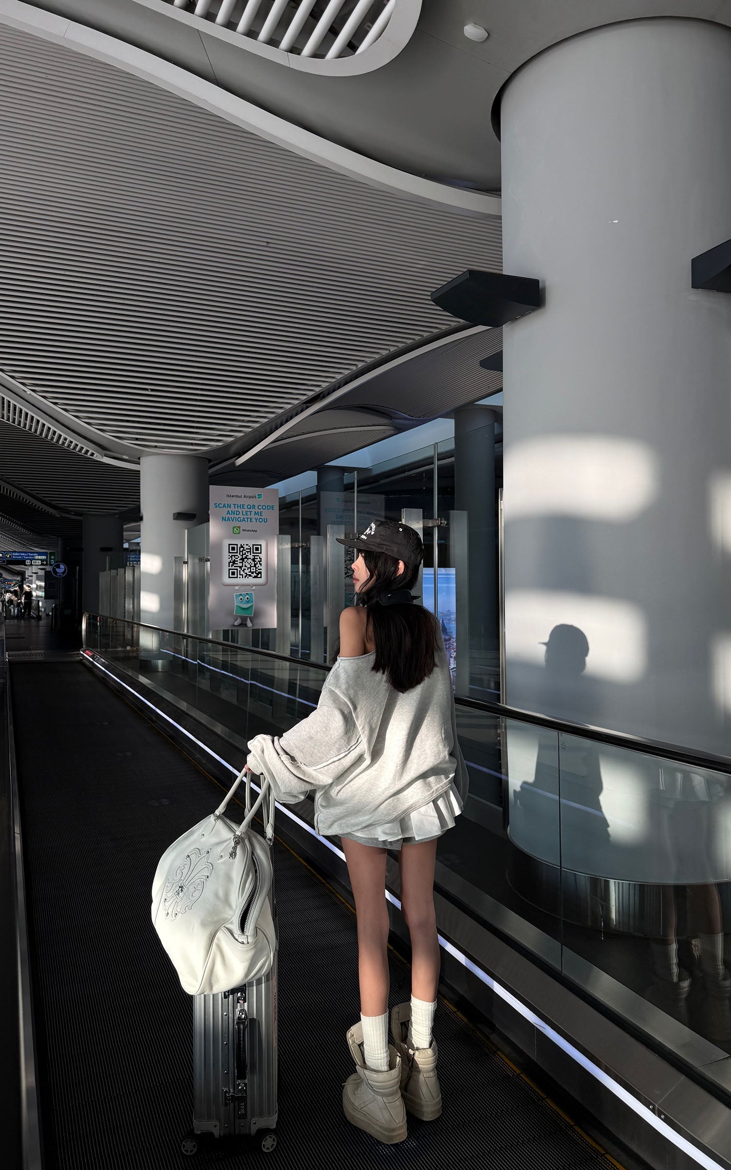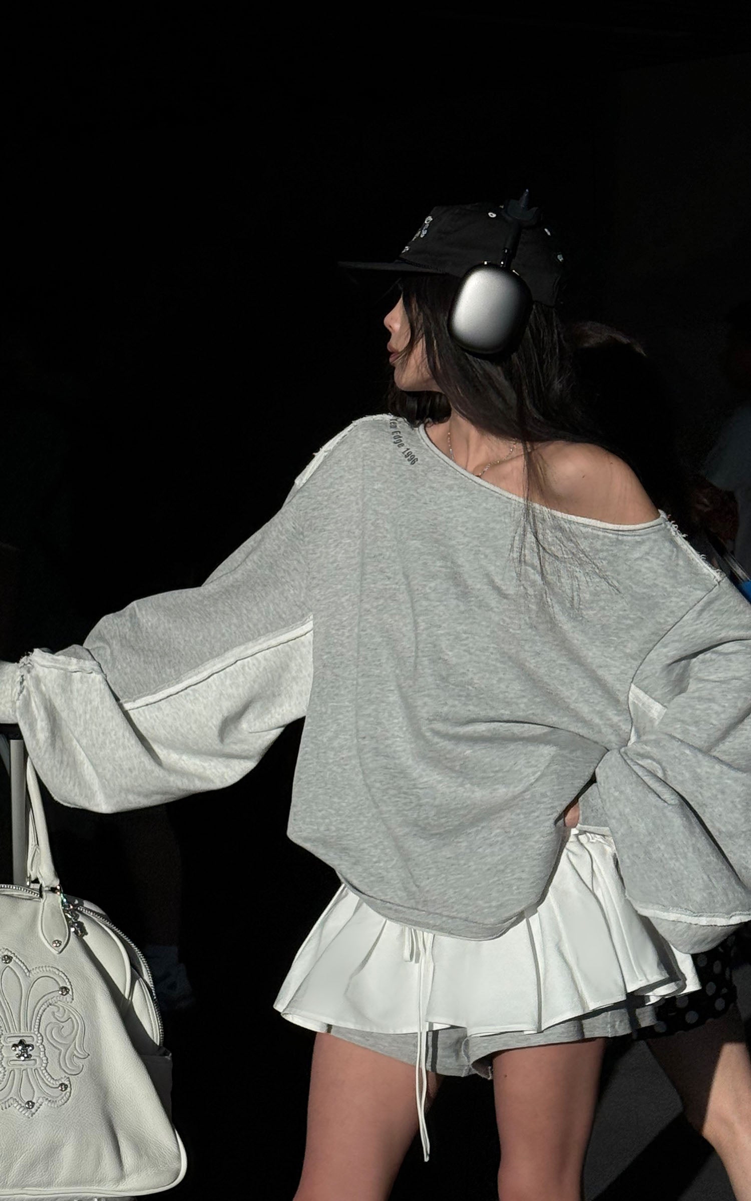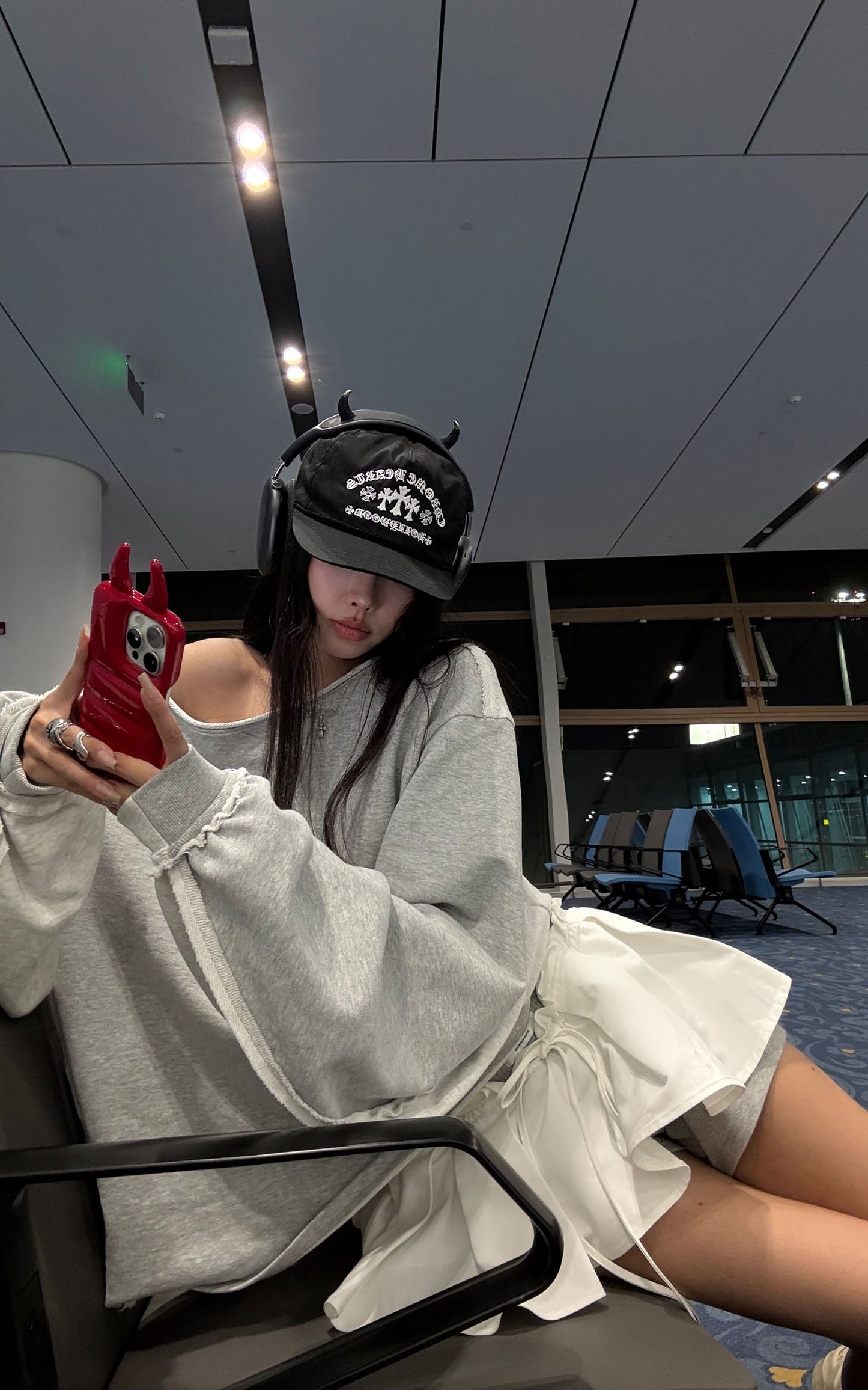 Engineered with a dual-layer silhouette, this mini skirt blends hyper-femininity and athletic utility. A structured pleated overskirt floats over soft cotton jersey shorts, secured by an elastic ribbed waistband with tonal drawstrings. The asymmetrical hem and subtle layering create a deliberate imbalance—off-duty, but intentional. Style it with oversized knits or a slouchy hoodie for a look that doesn’t beg for attention but never fades into the background.